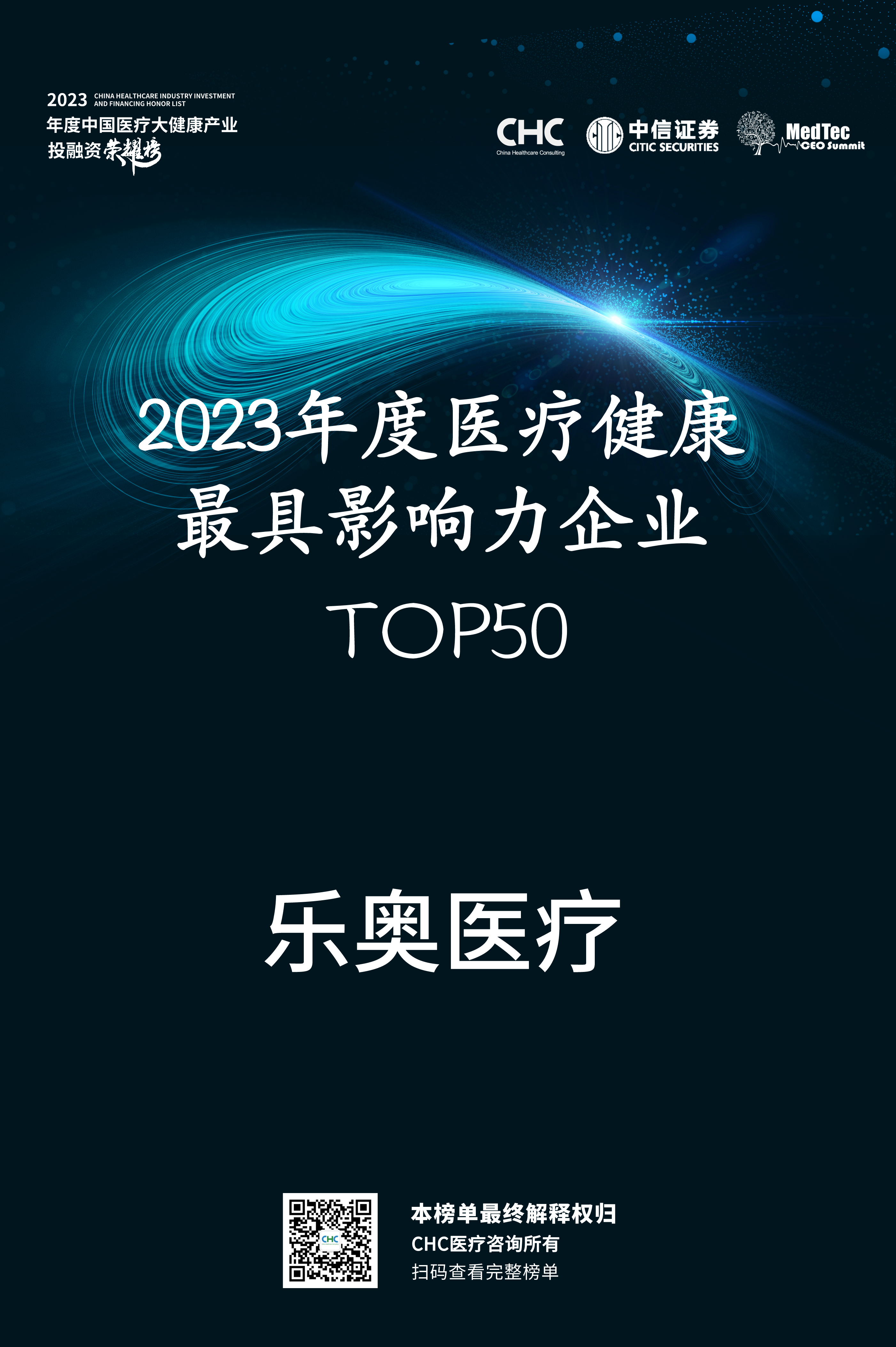 5月15日,「2023年度中國醫(yī)療大健康產(chǎn)業(yè)投融資榮耀榜」隆重揭曉。樂奧醫(yī)療憑借卓越的創(chuàng)新能力,優(yōu)秀的資本市場表現(xiàn),穩(wěn)健的運營管理,以及在商業(yè)化布局和行業(yè)貢獻等方面的綜合實力,榮膺「2023年度醫(yī)療健康最具影響力企業(yè)TOP50」榮耀榜單。