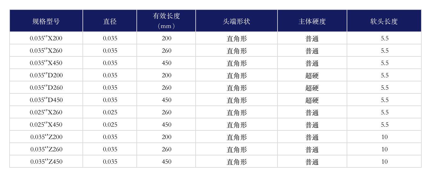 1、自潤滑;2、鎳鈦合金內(nèi)芯;3、導(dǎo)絲表面采用雙色交替;4、可在X射線下顯影;5、喇叭口設(shè)計。